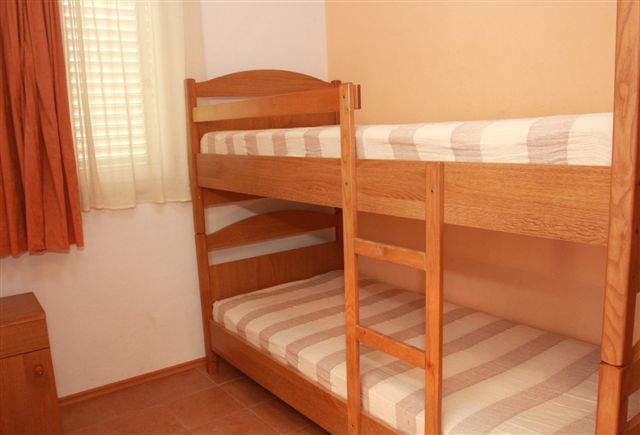 A6 Studio+2. Dnevni boravak, bračni krevet, kuhinja sa trpezarijom, spavaća soba sa krevetima na kat,za odrasle. Kupatilo (WC+tuš kabina), balkon odvojen samo za ovaj apartman.